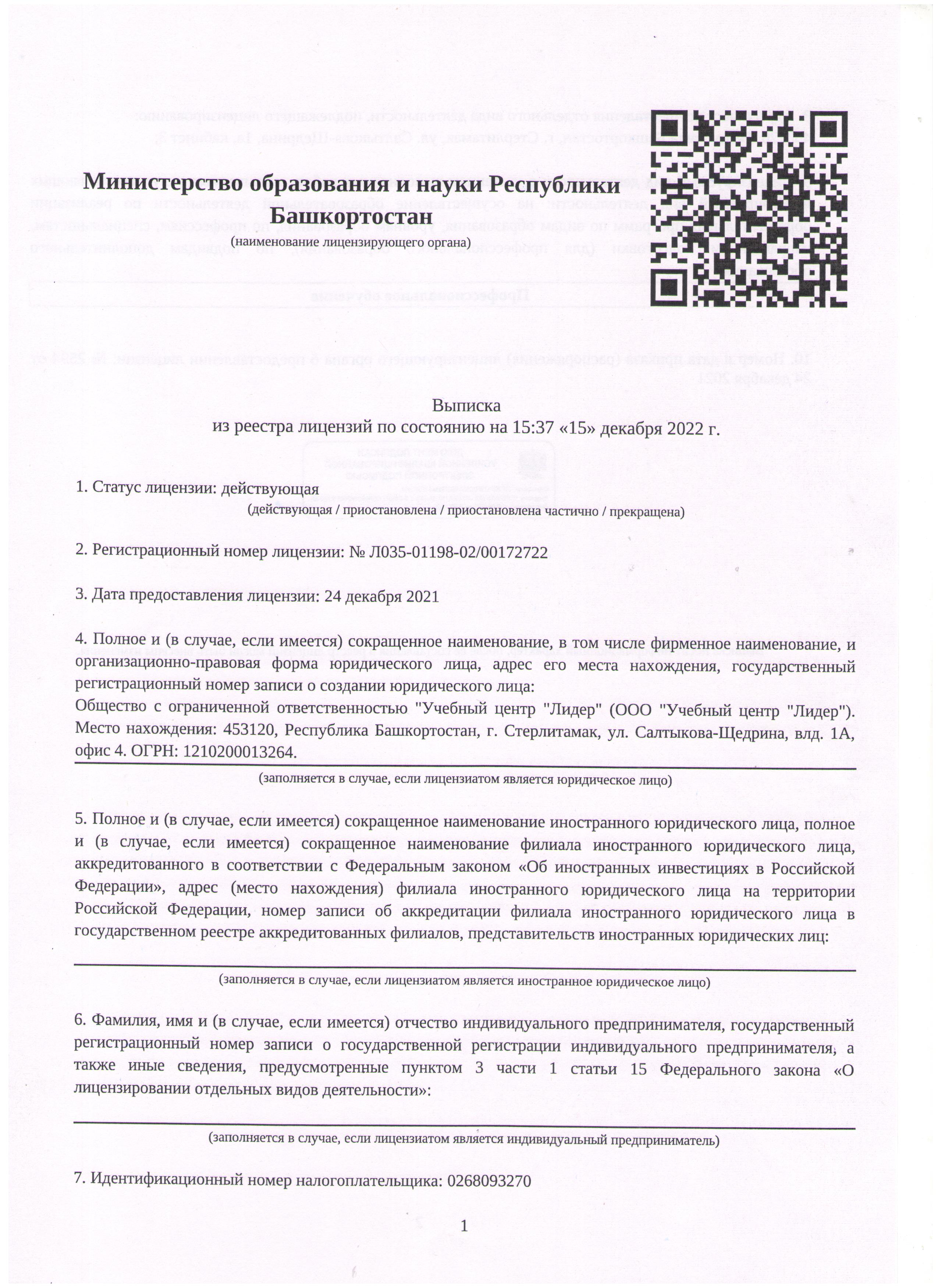 Общество с ограниченной ответственностью "Учебный центр "Лидер"